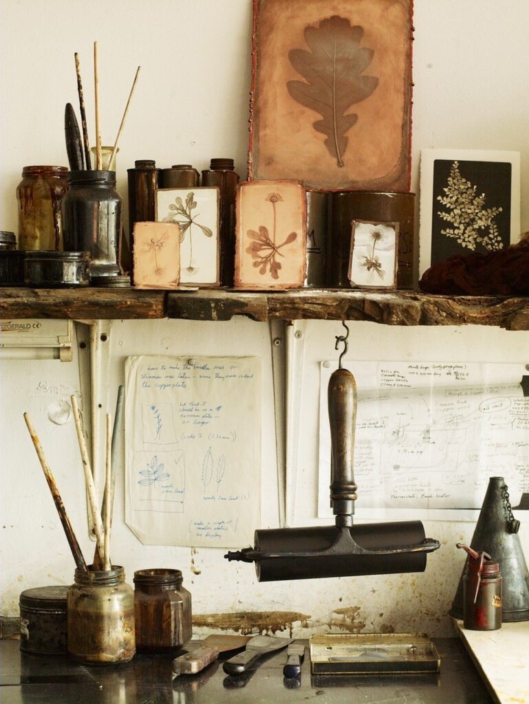 Välkommen till en konstnärsträff där du får lära dig mer om den historiska naturtryckskonsten. Se exempel på kopparplåtar och originaltryck, och experimentera med monotypi-tryck av växter.
