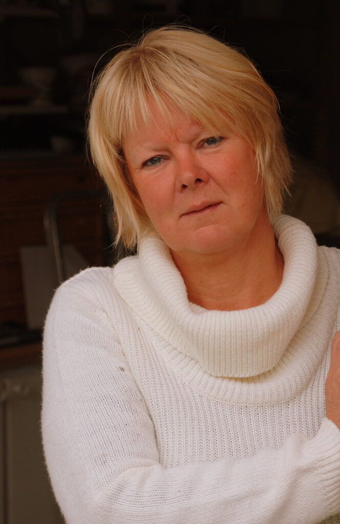 Jag är keramiker och arbetar oftast i vit stengodslera. Jag arbetar, just nu mest med skulptur och objekt som jag bränner i rakuteknik. Jag har i flera år arbetat med hus, byggnader och kyrkor, som bild, skulptur och symbol. Den senaste utställningen var objekten olika mötesplatser, en del allmänna men de flesta var personliga möten och platser jag varit på. Jag drejar även brukskeramik som koppar, skålar, fat och kannor. Jag arbetar på förskola som ateljerista/konstnär.
