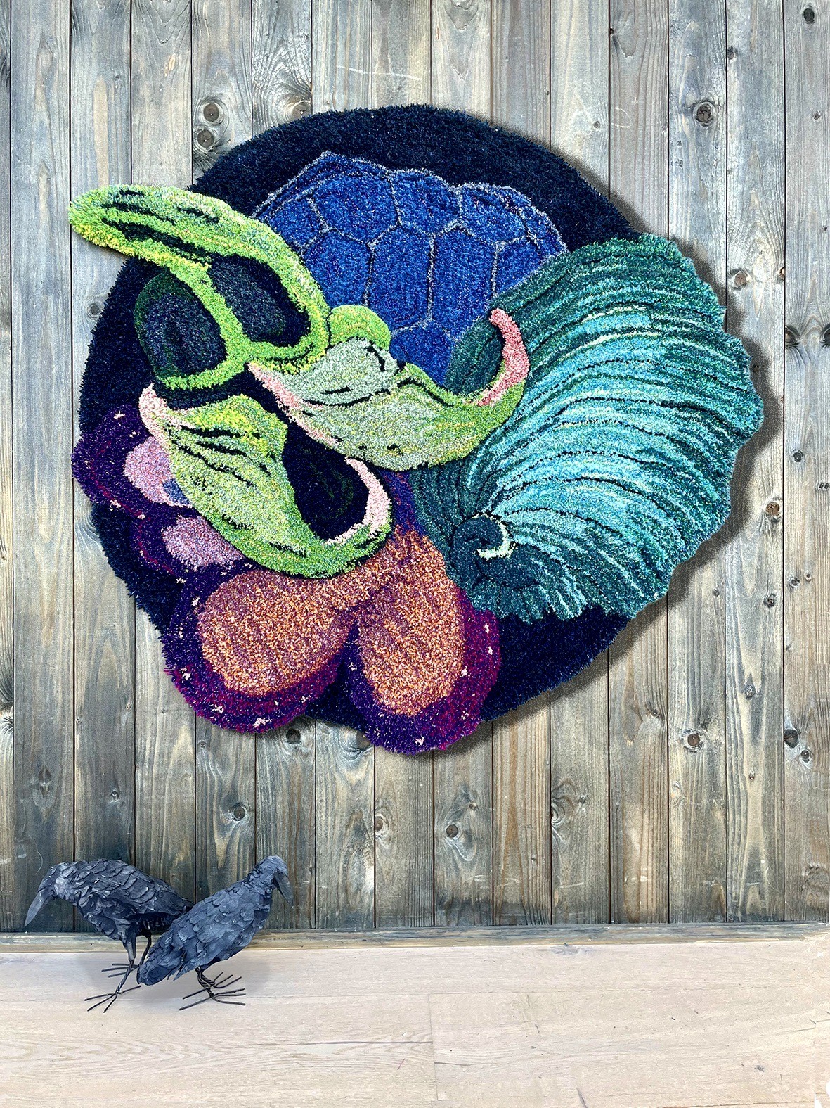 Jag har under senaste året arbetat mycket i tuftverkstaden på KKV Göteborg, där jag har möjlighet att arbeta med större tuftade verk.