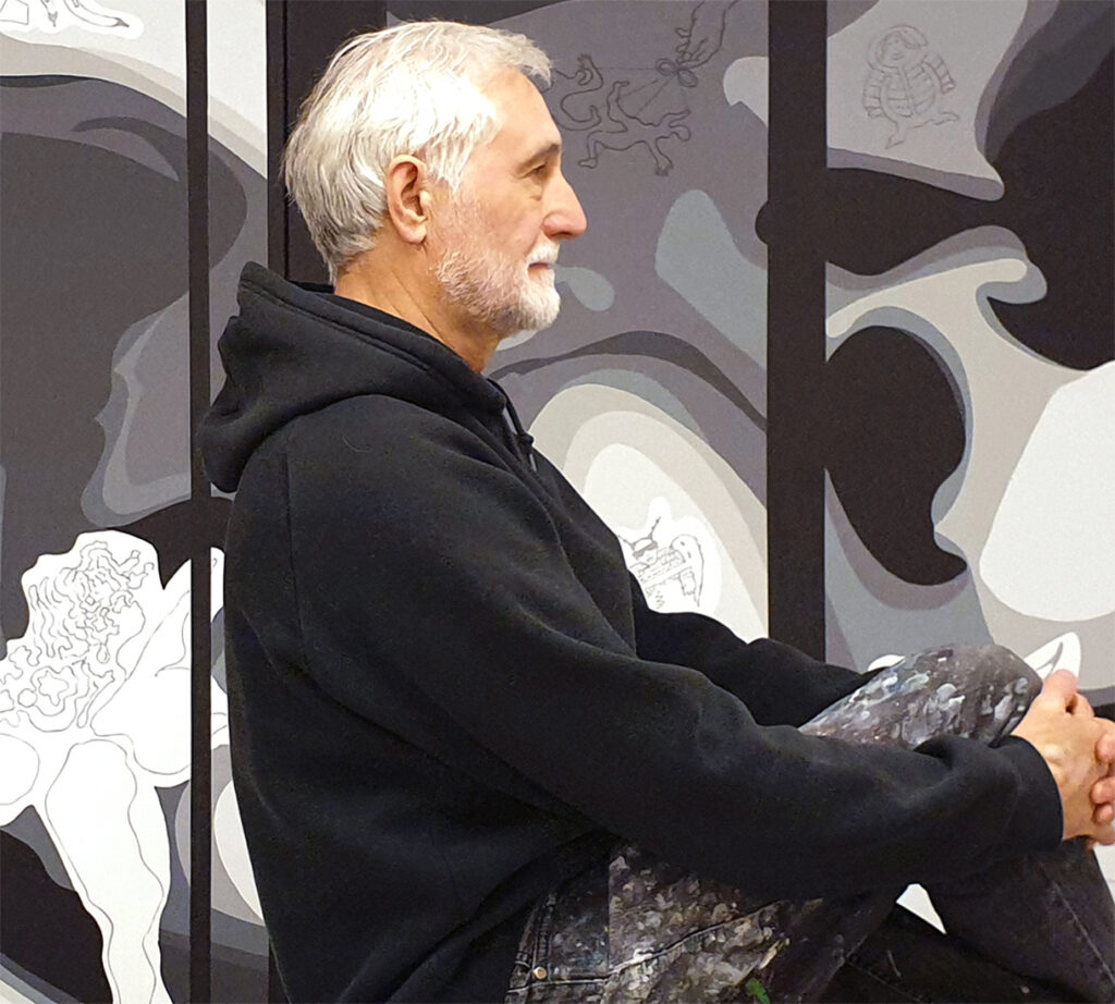 Jag använder abstrakta former och intensiva färger, traditionell och digital metod.
